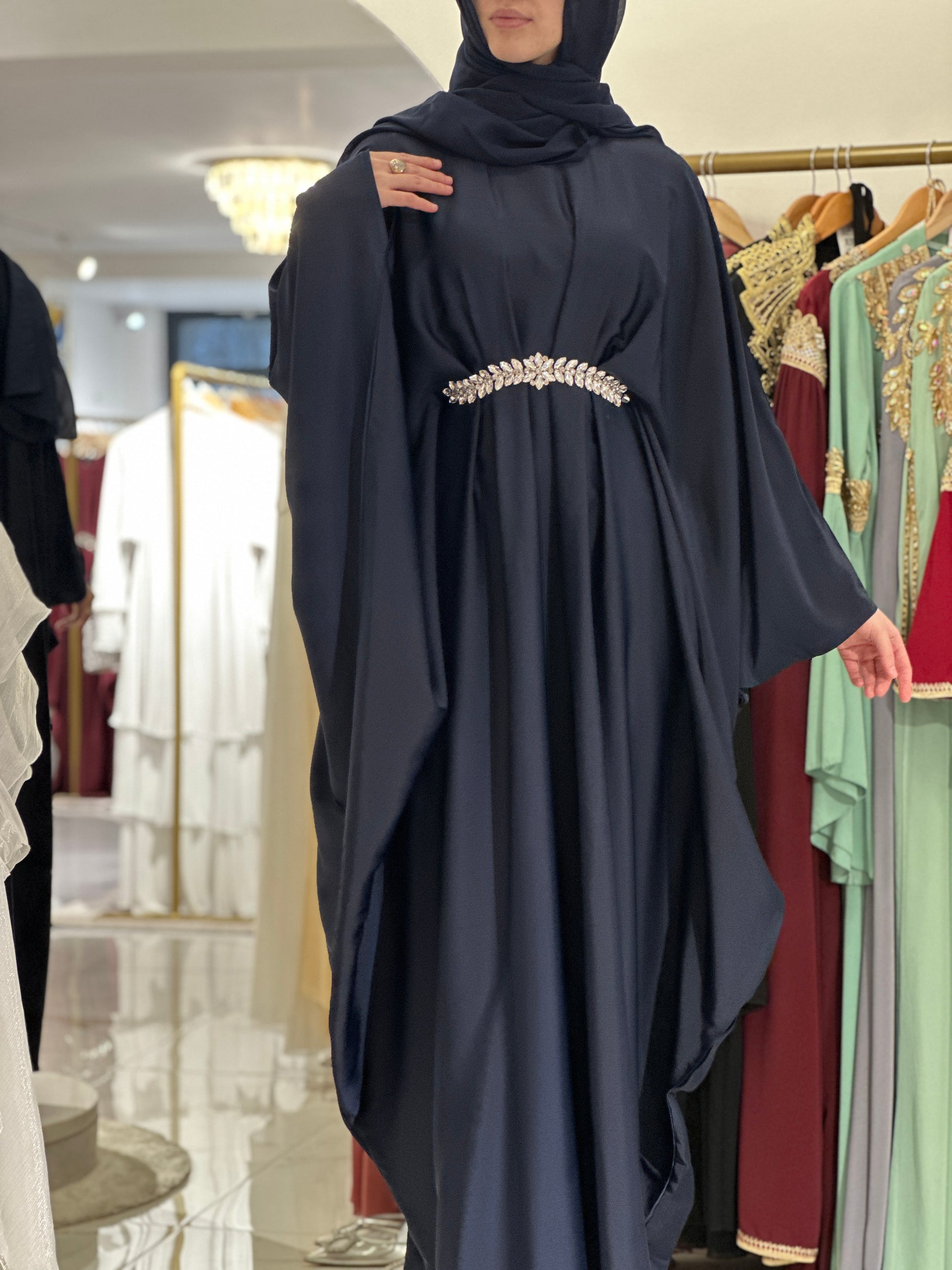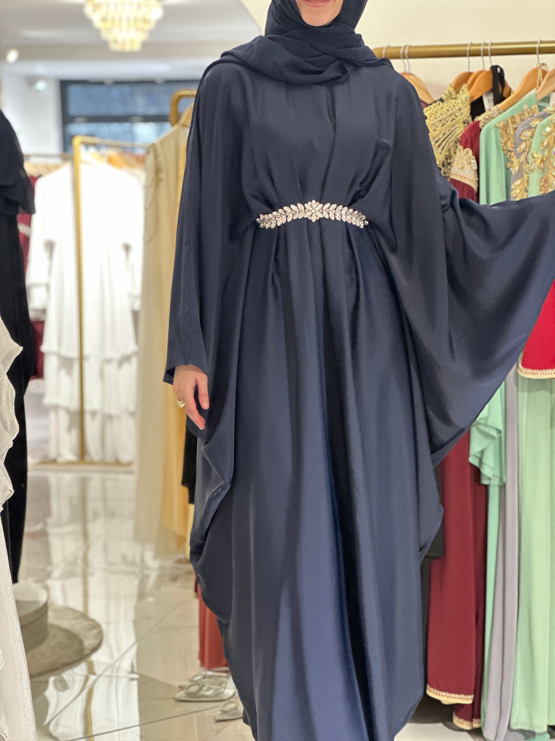 Za djevojku visine 180 cm, preporučena dužina abaje je oko 160 cm.