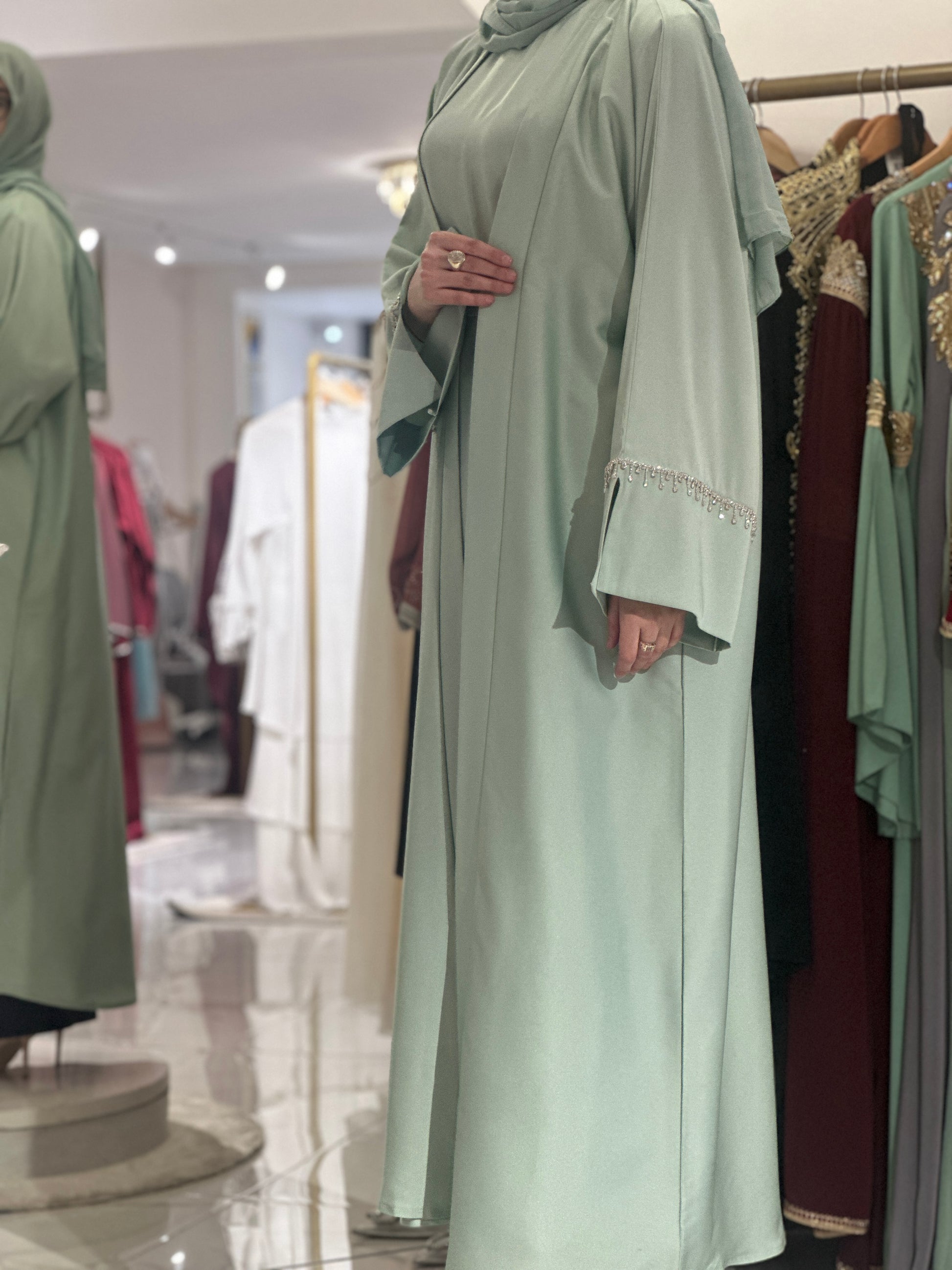 Za djevojku visine 180 cm, preporučena dužina abaje je oko 160 cm.
