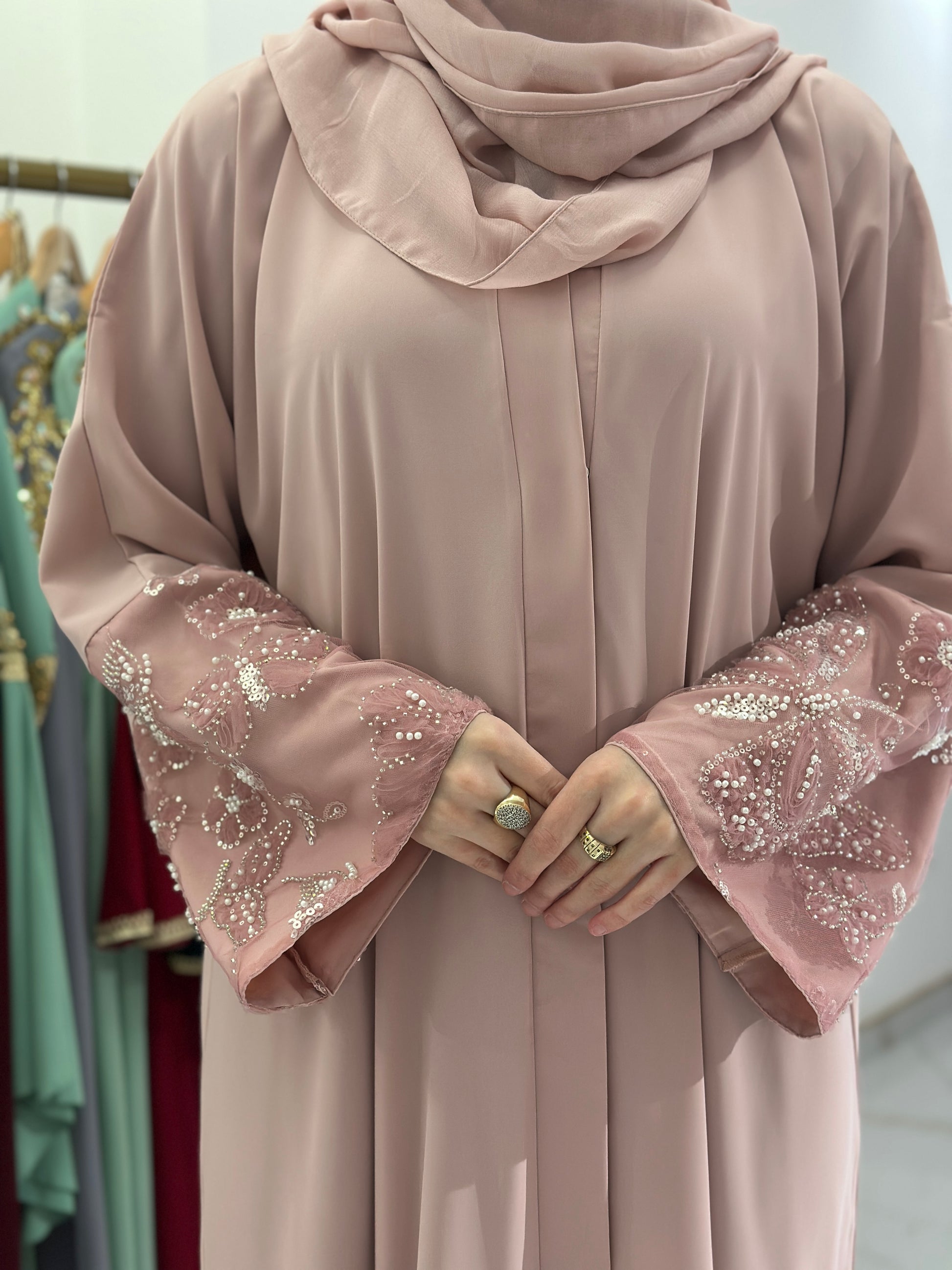 Za djevojku visine 180 cm, preporučena dužina abaje je oko 160 cm.